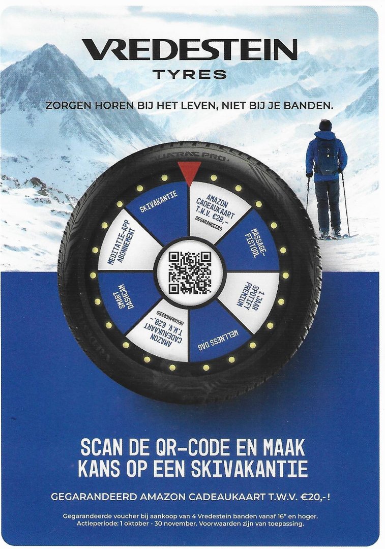 Dit is een actie van Vredestein. De beoordeling van je aanvraag en de toekenning van de prijzen gebeuren enkel door Vredestein.